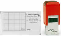 Você recebe um conjunto completo com 100 cartões prontos com o número de quadrados que quiser com o logo, nome da sua empresa e telefone, e o carimbo com a gravação que escolher.