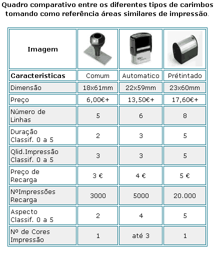Claro que também há que ter em conta o preço de cada tipo de carimbo